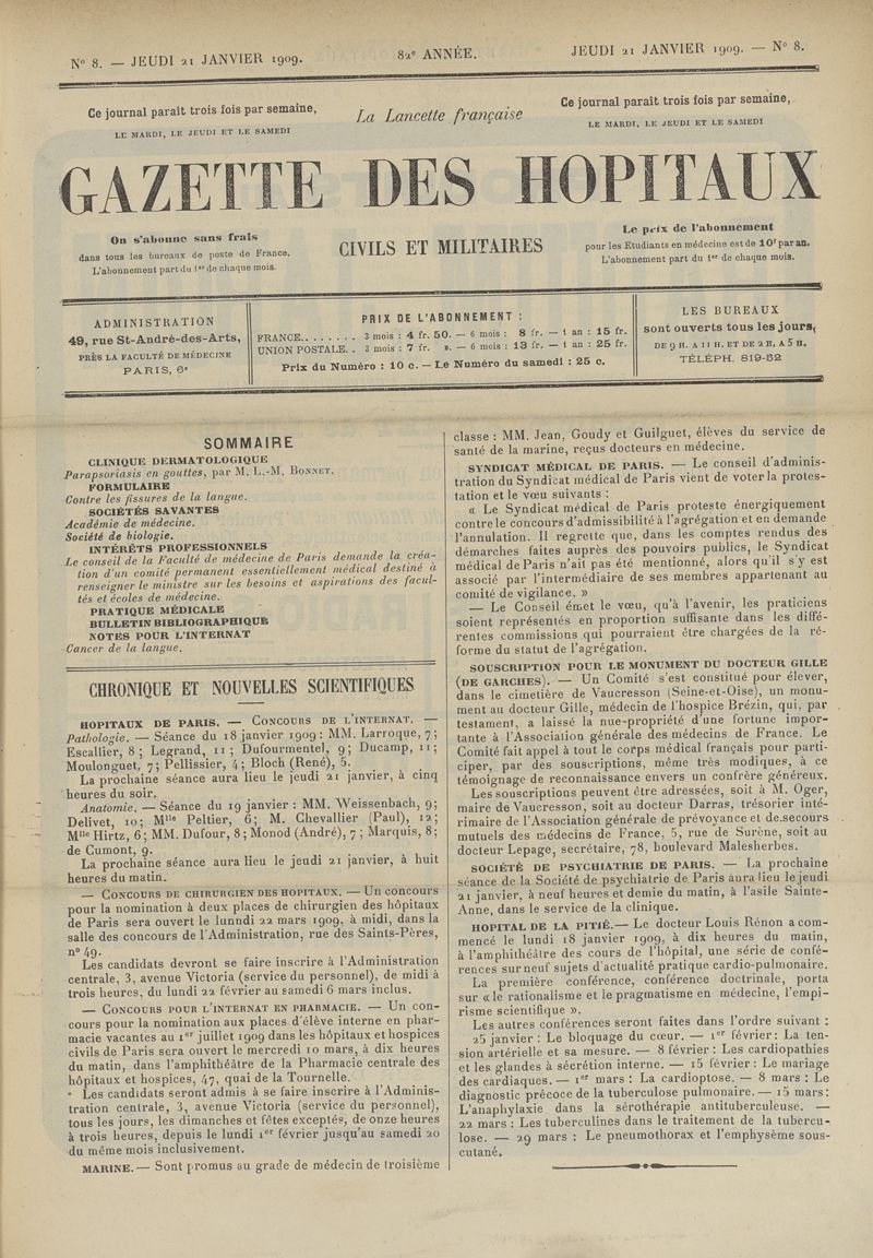 1909, tome 82e année. -