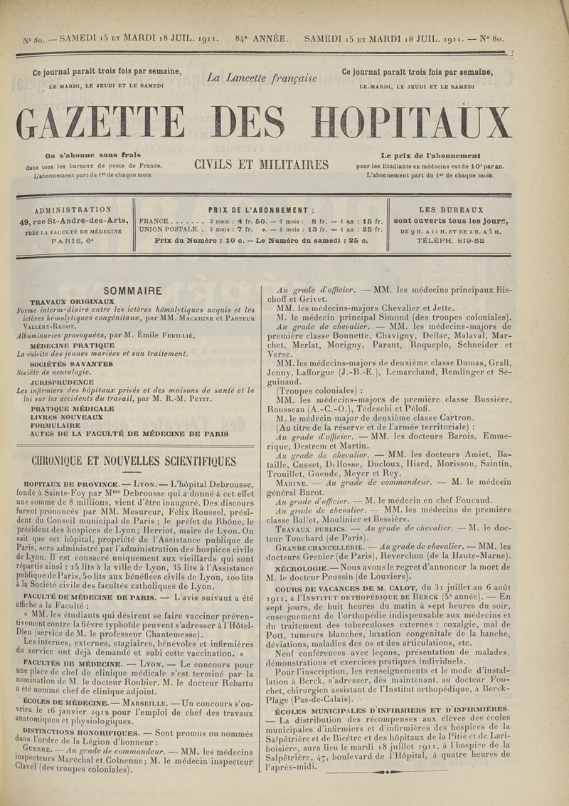 1911, tome 84e année. -