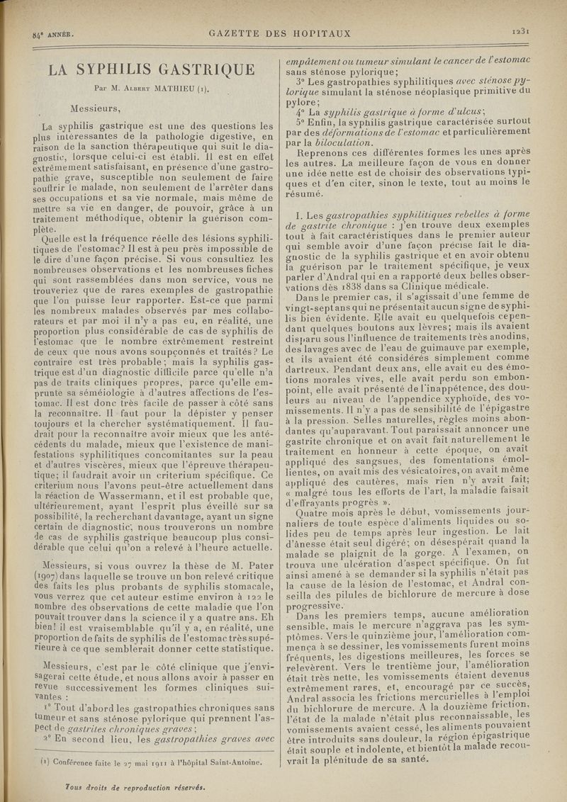 1911, tome 84e année. -
