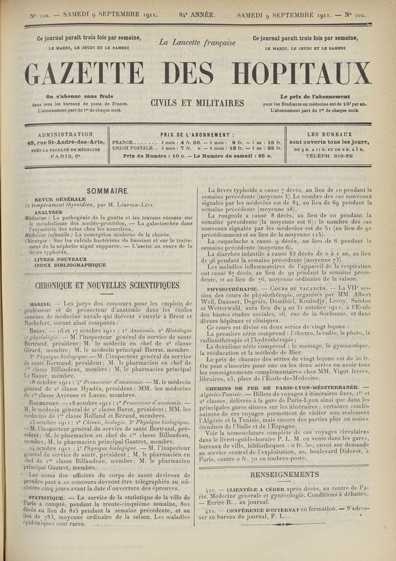 1911, tome 84e année. -