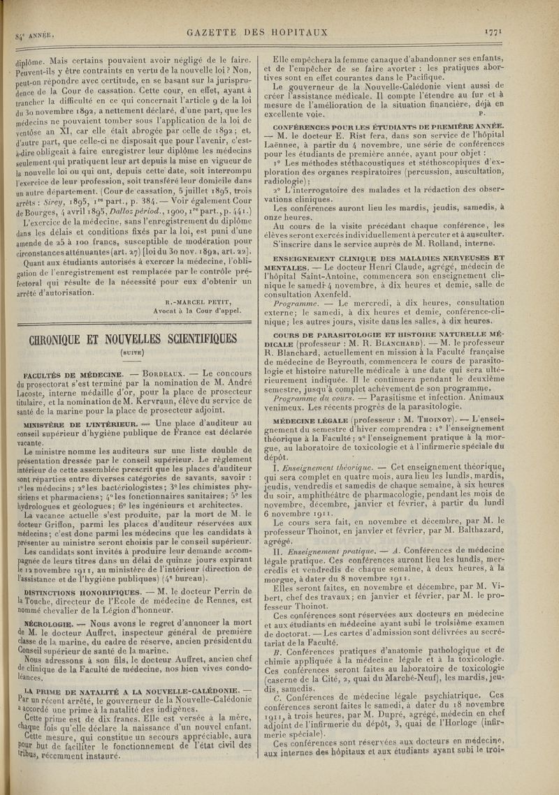 1911, tome 84e année. -