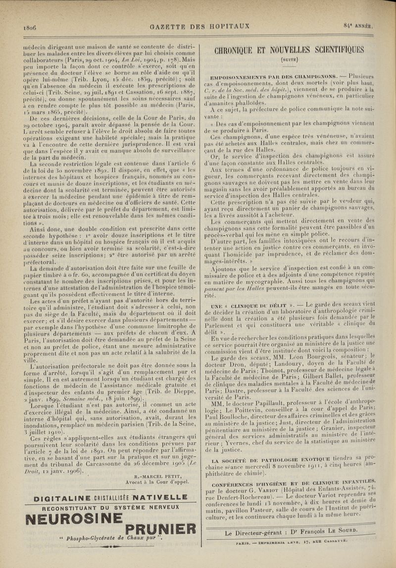 1911, tome 84e année. -