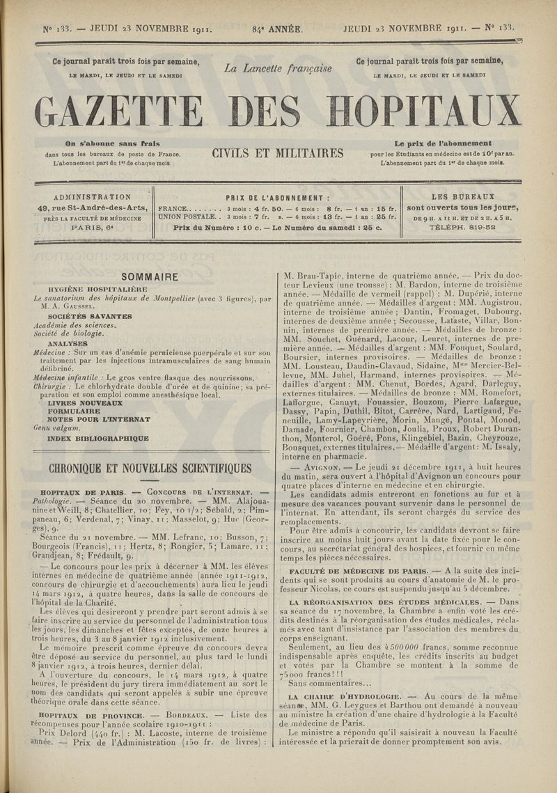 1911, tome 84e année. -