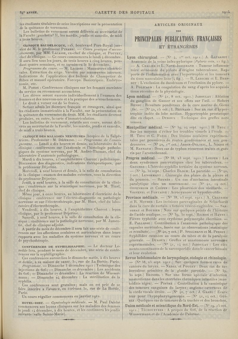 1911, tome 84e année. -