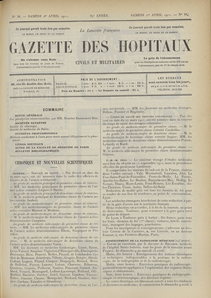 1911, tome 84e année. -