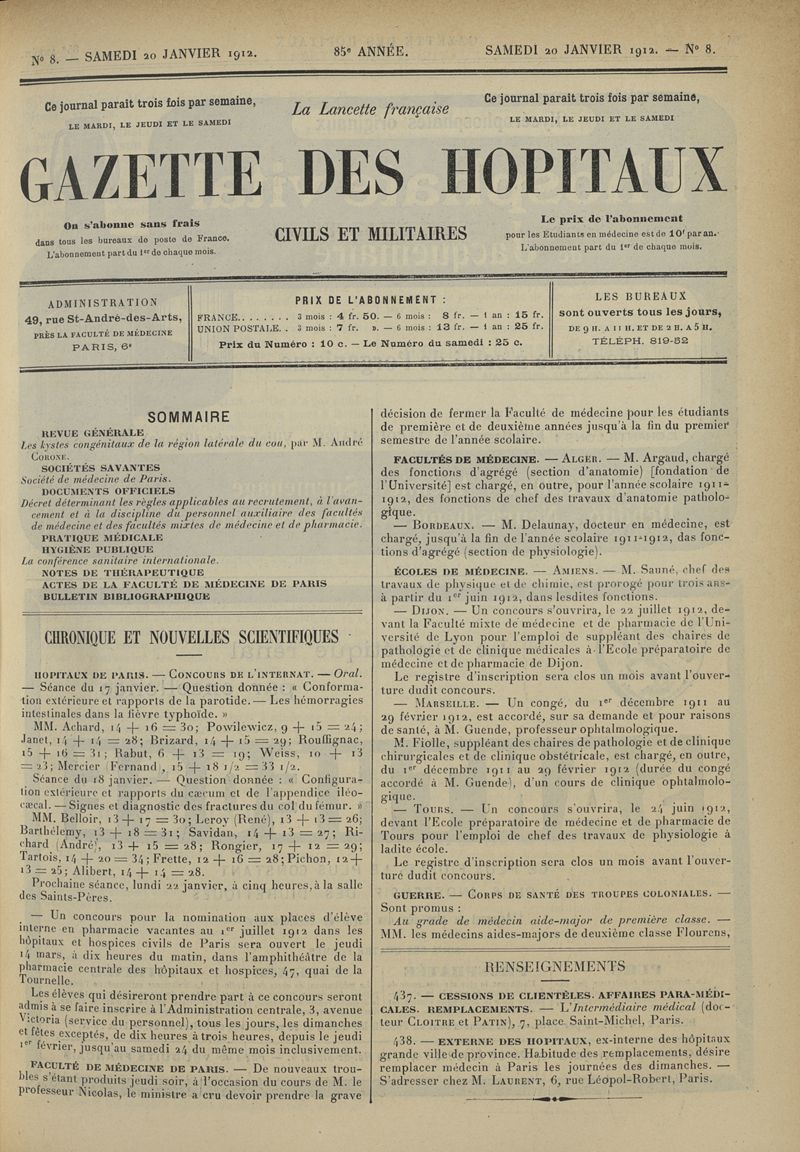 1912, tome 85e année. -