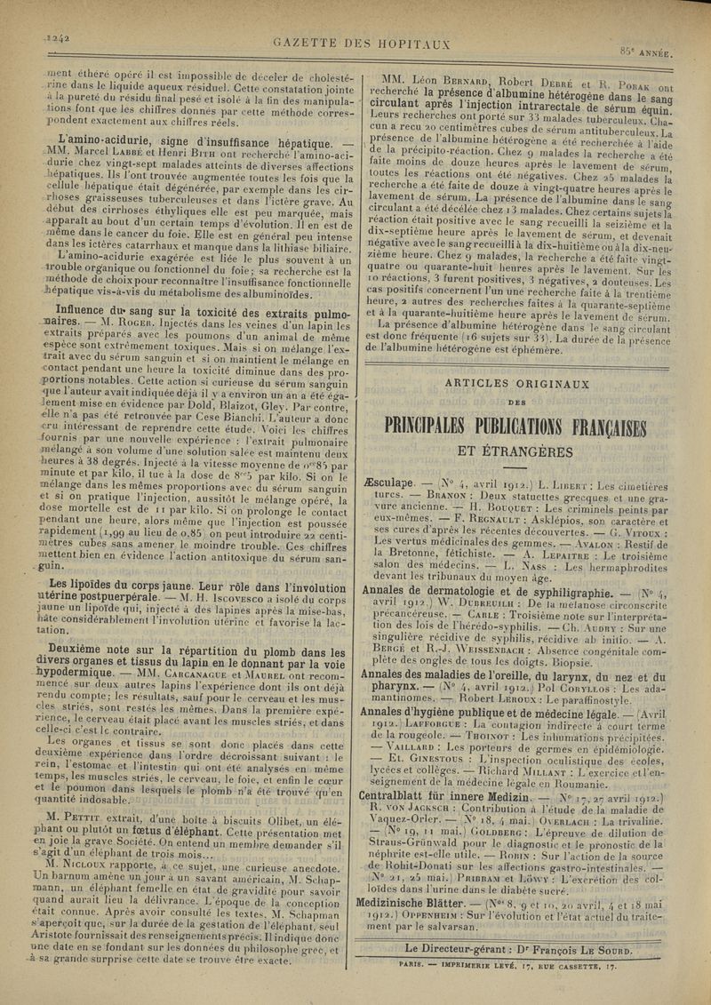 1912, tome 85e année. -