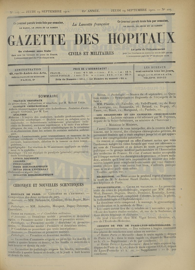 1912, tome 85e année. -