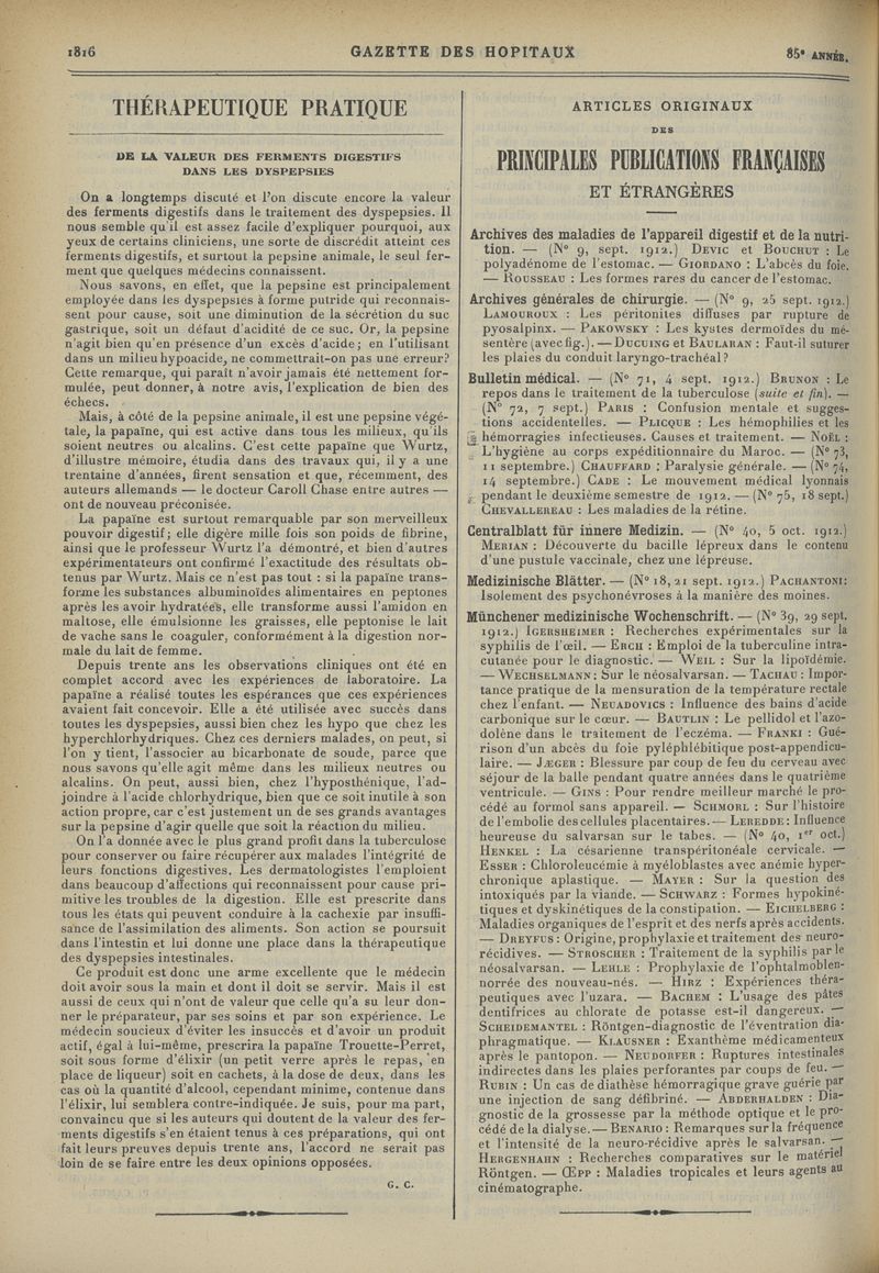 1912, tome 85e année. -