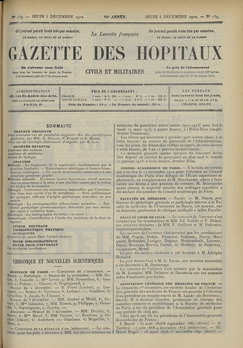 1912, tome 85e année. -