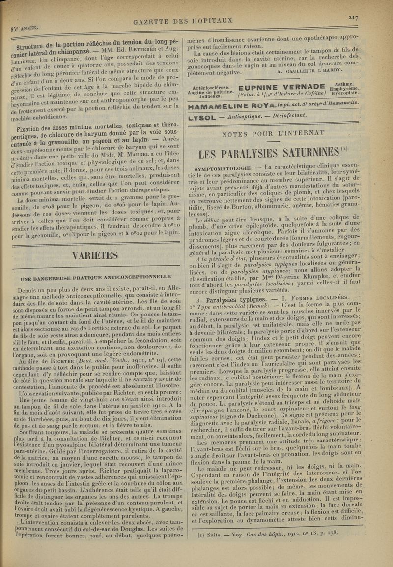 1912, tome 85e année. -