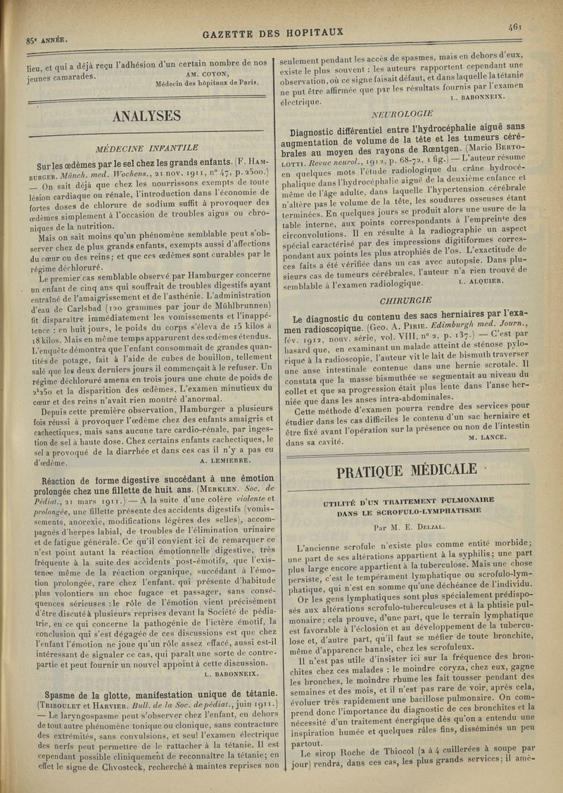 1912, tome 85e année. -