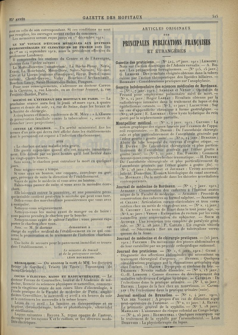 1912, tome 85e année. -