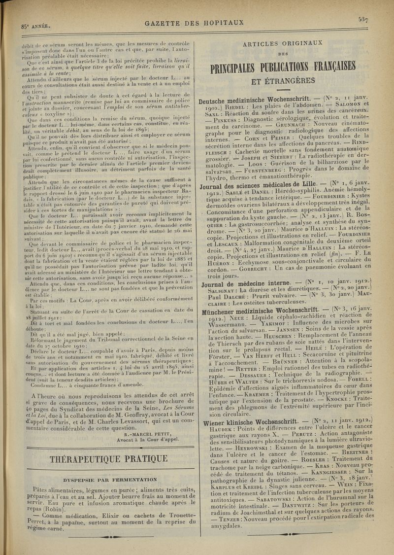 1912, tome 85e année. -