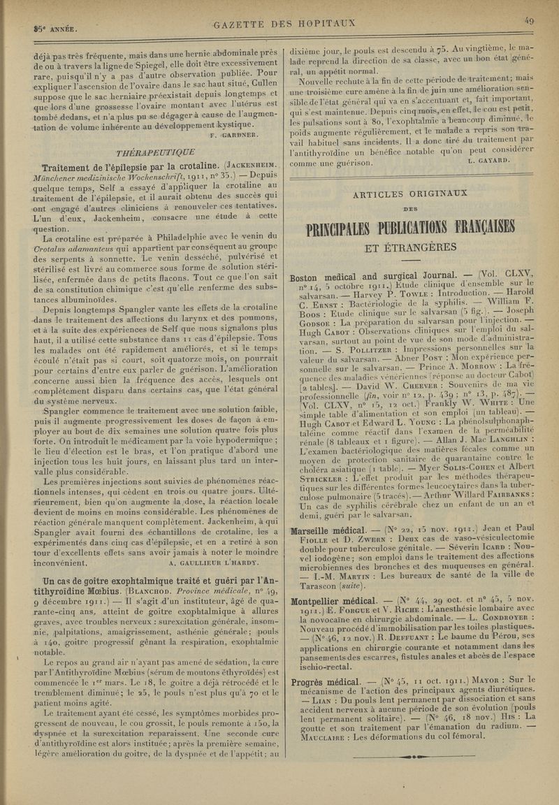 1912, tome 85e année. -