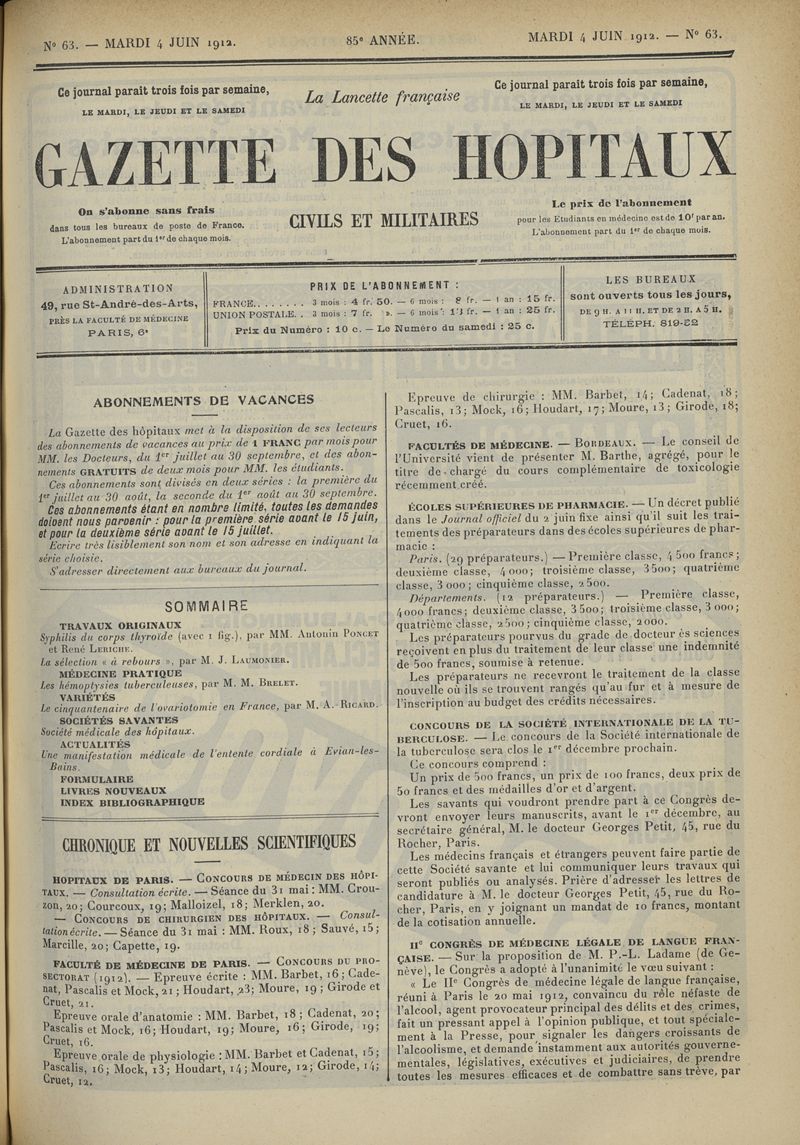 1912, tome 85e année. -
