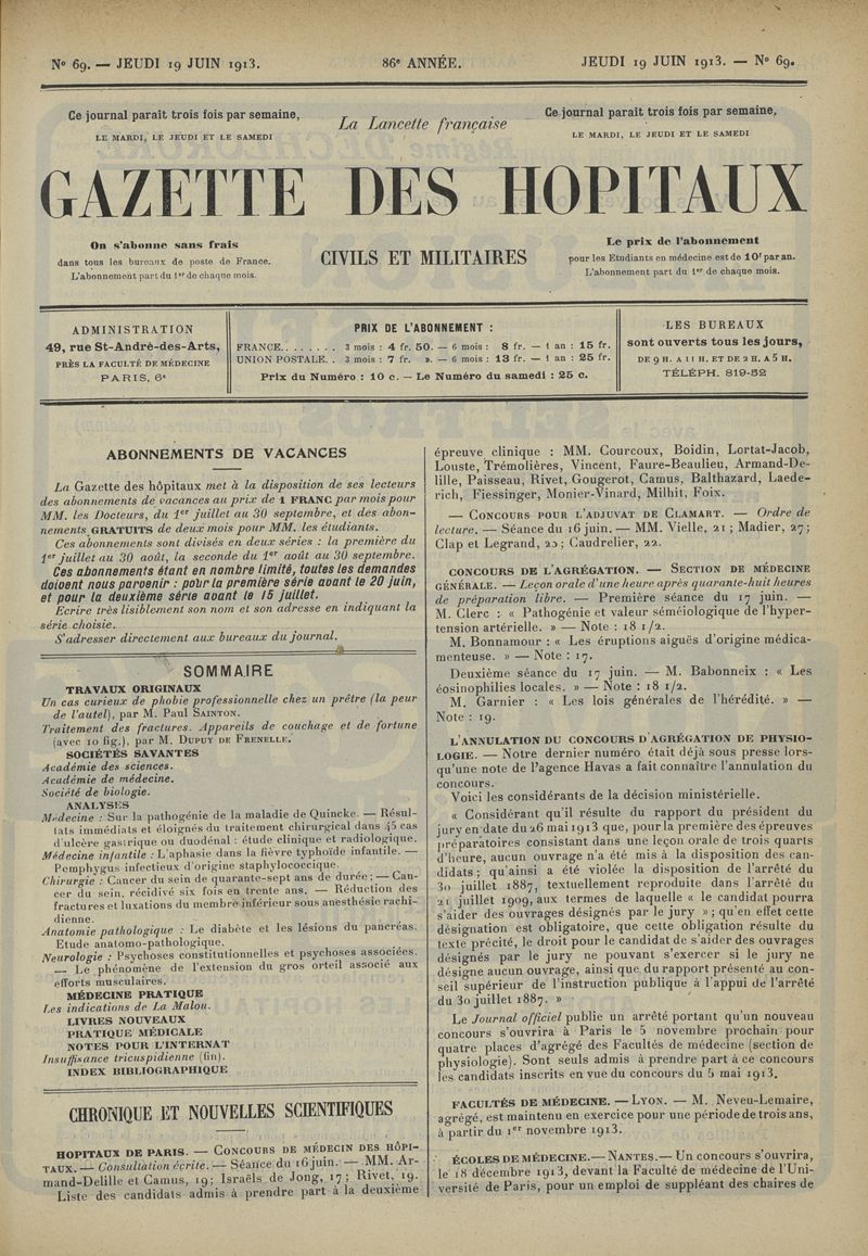 1913, tome 86e année. -