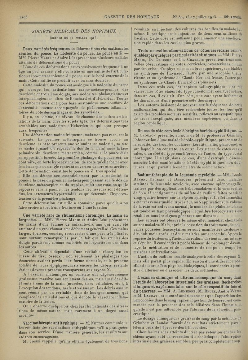 1913, tome 86e année. -