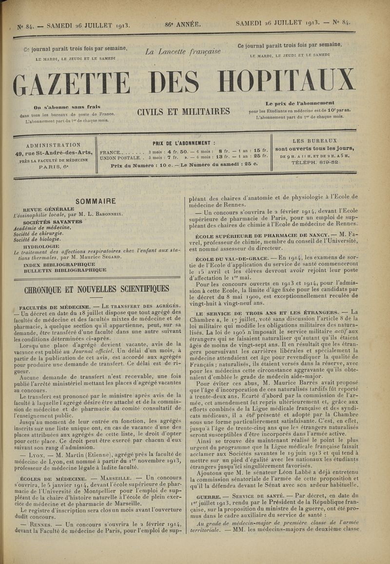 1913, tome 86e année. -