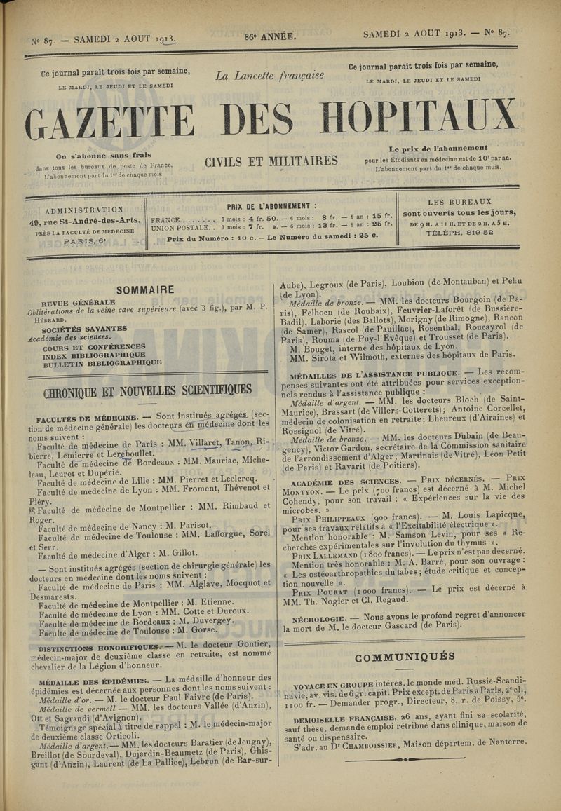 1913, tome 86e année. -