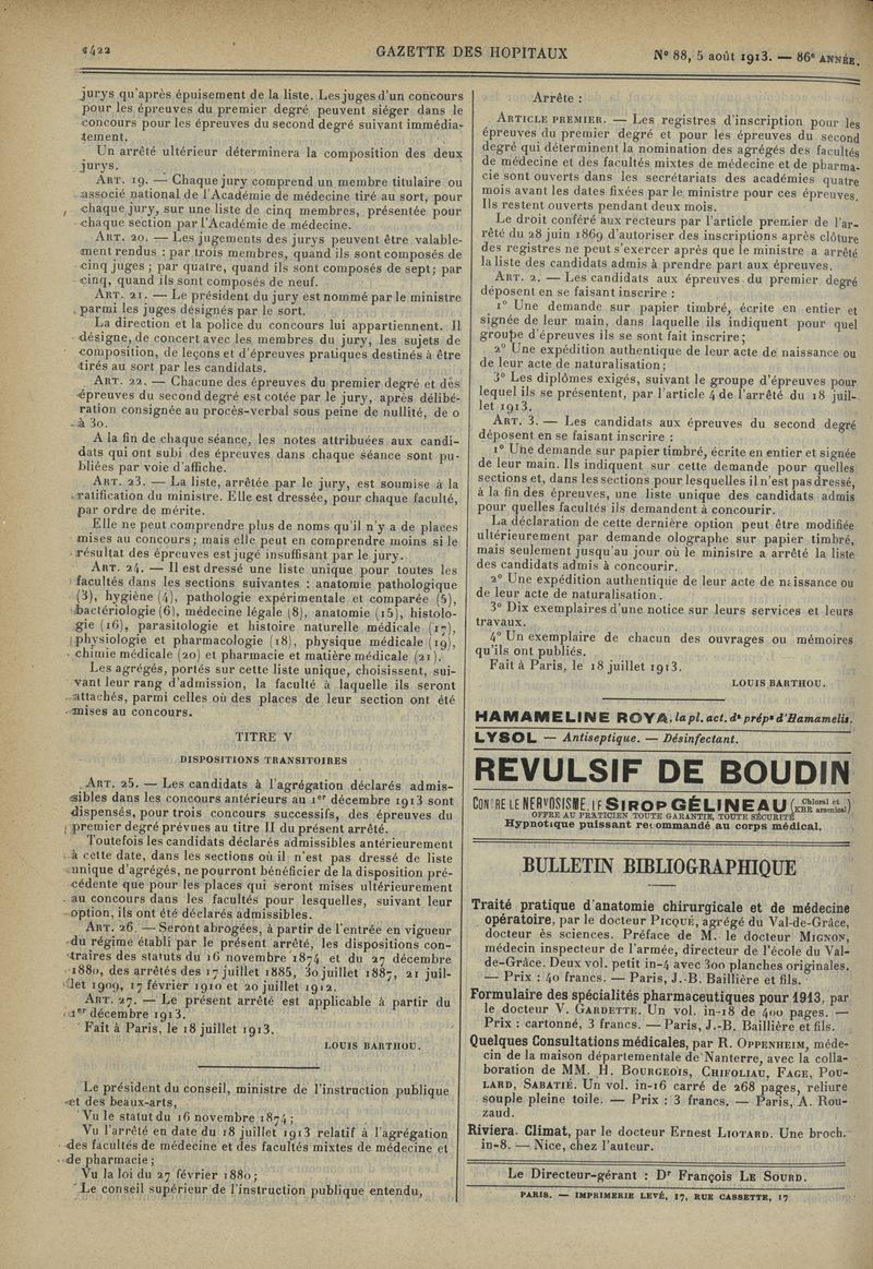 1913, tome 86e année. -