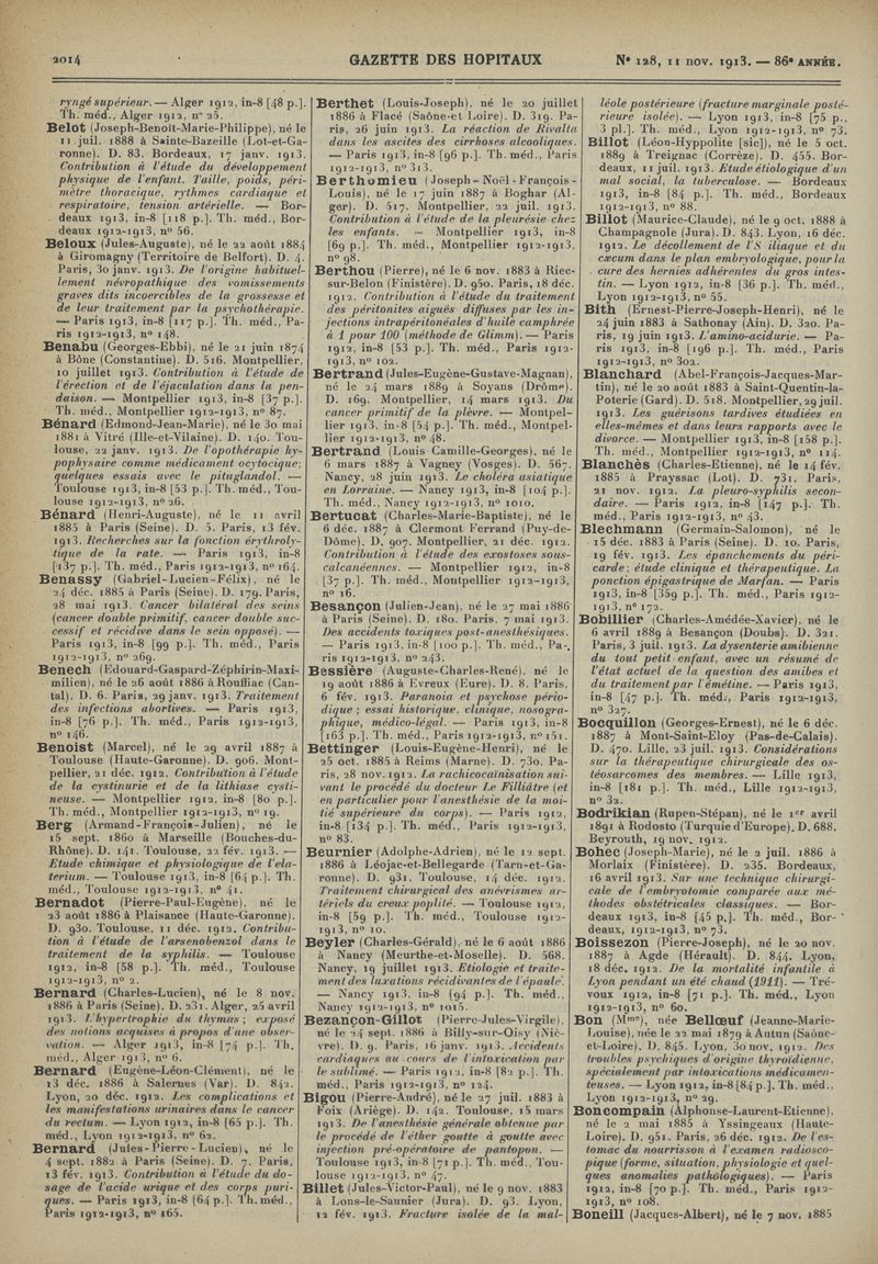 1913, tome 86e année. -