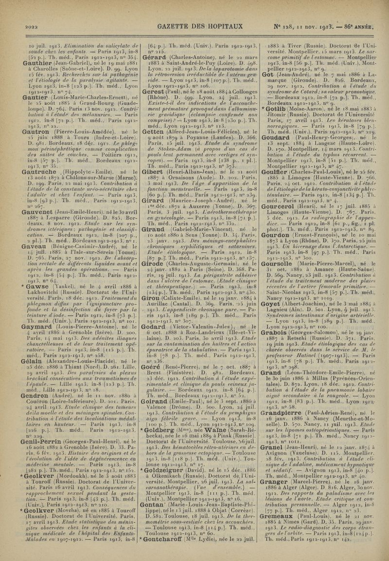1913, tome 86e année. -