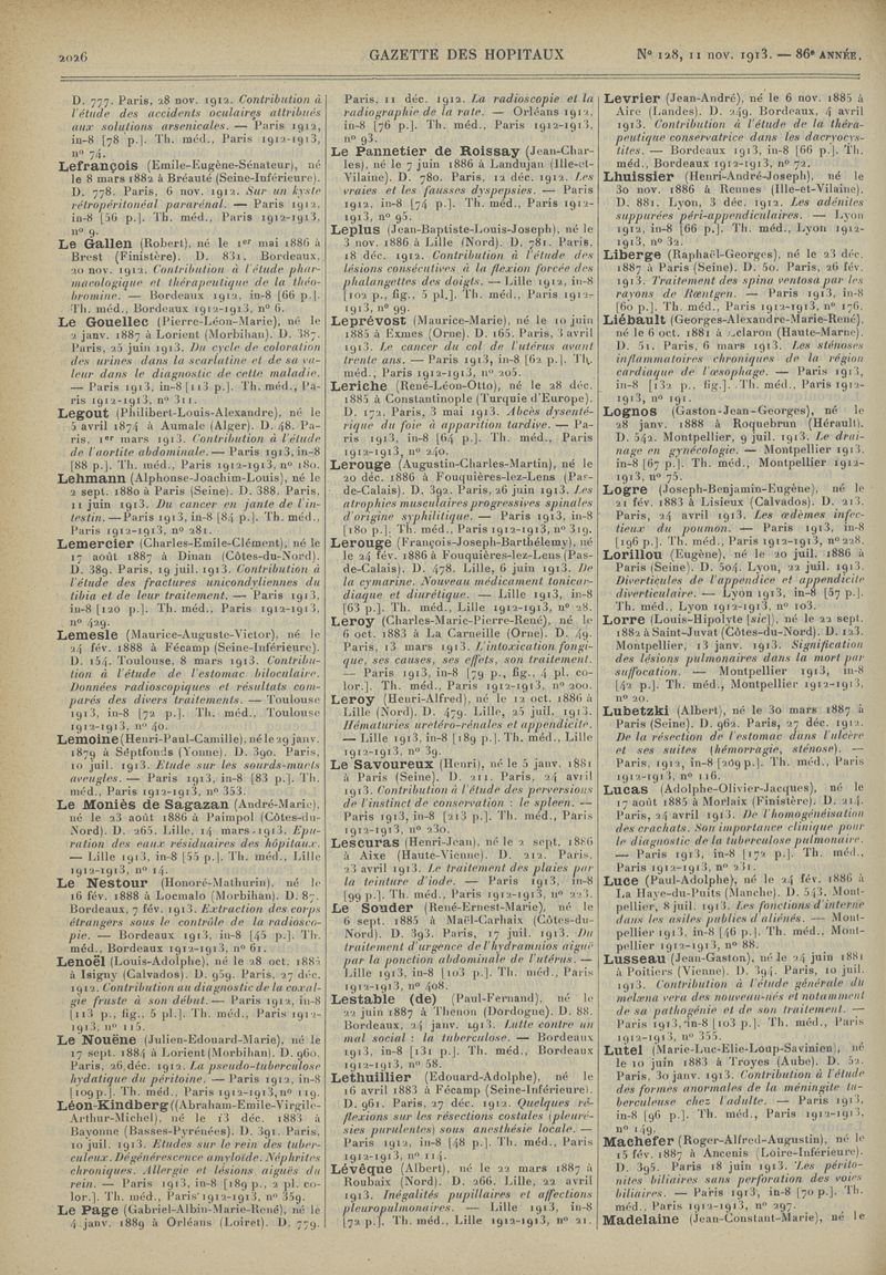 1913, tome 86e année. -