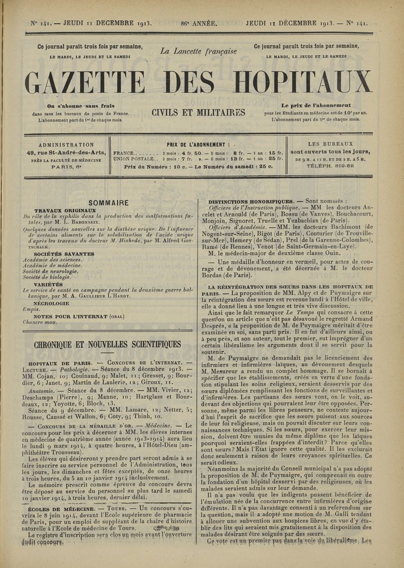 1913, tome 86e année. -