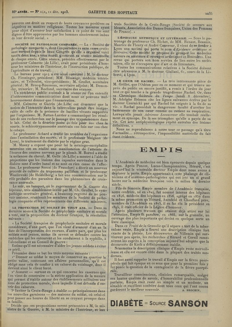 1913, tome 86e année. -