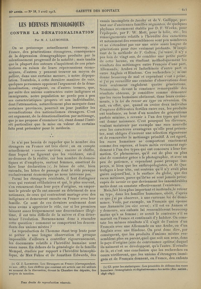 1913, tome 86e année. -