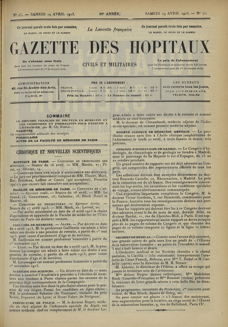 1913, tome 86e année. -