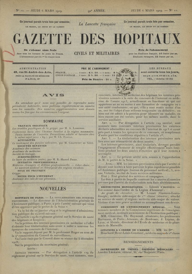 1919, tome 92e année. -