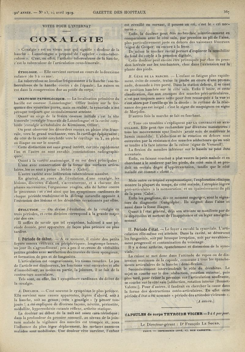 1919, tome 92e année. -