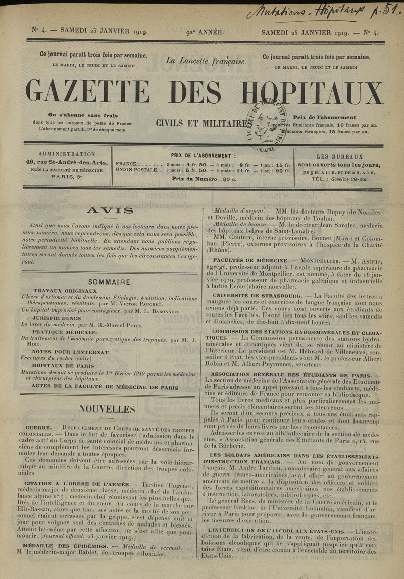 1919, tome 92e année. -