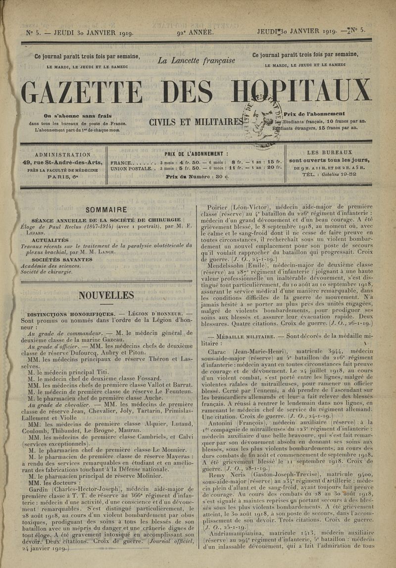 1919, tome 92e année. -