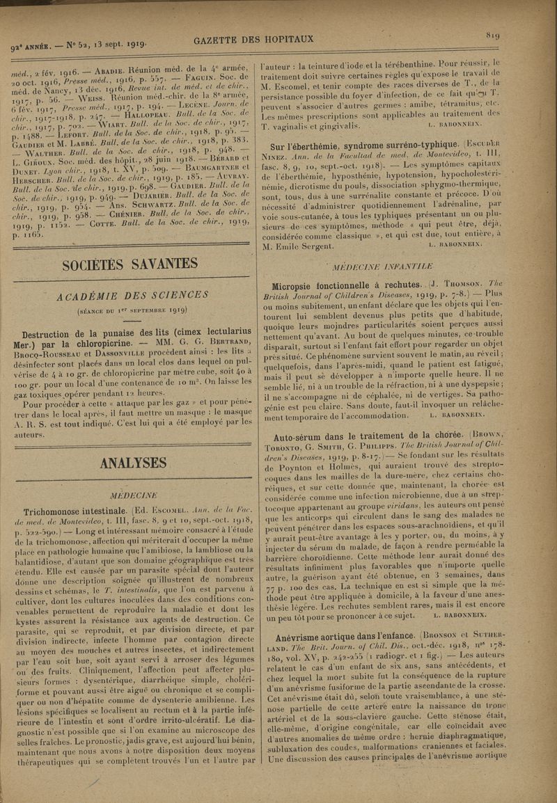 1919, tome 92e année. -
