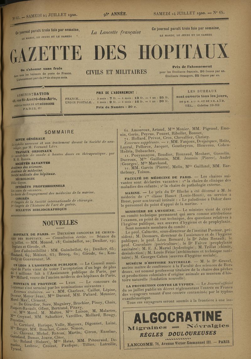 1920, tome 93e année. -