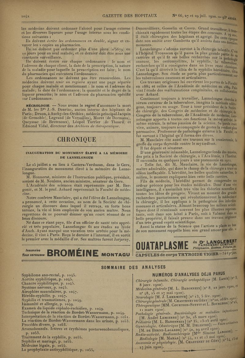 1920, tome 93e année. -
