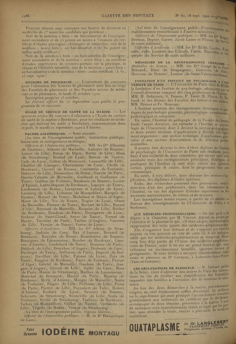 1920, tome 93e année. -