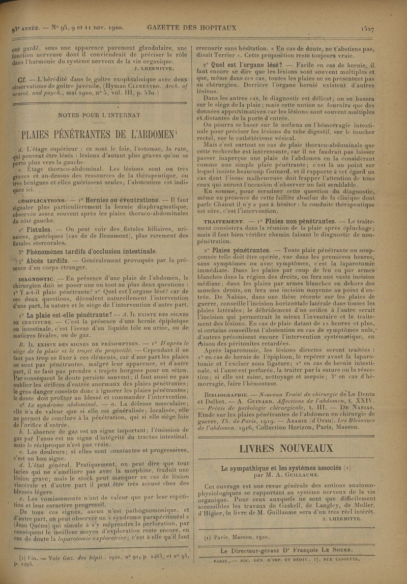1920, tome 93e année. -