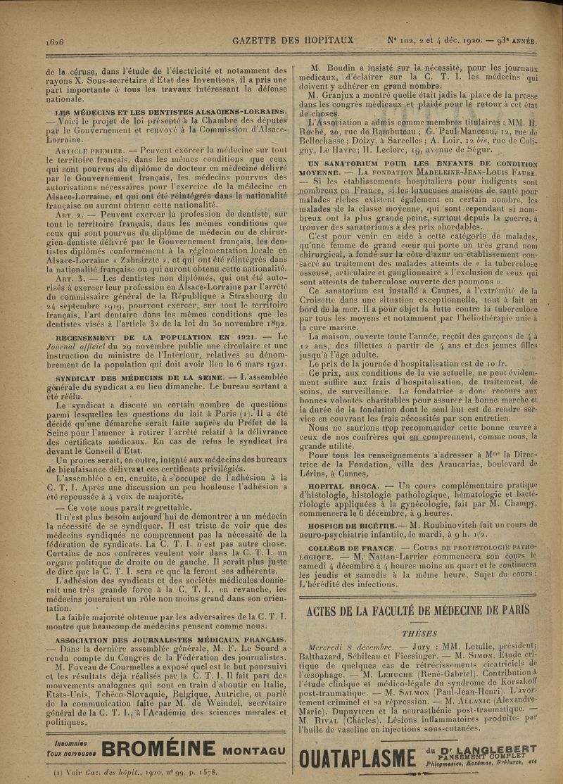 1920, tome 93e année. -