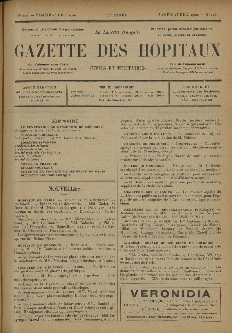 1920, tome 93e année. -
