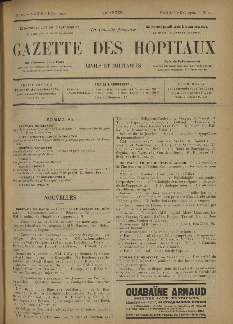 1920, tome 93e année. -