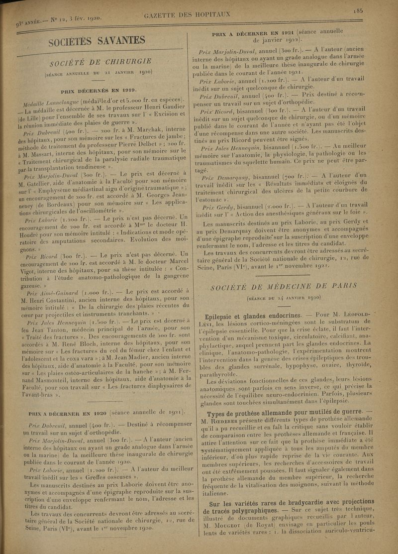 1920, tome 93e année. -