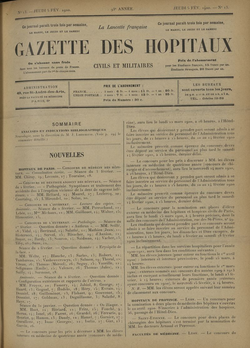 1920, tome 93e année. -