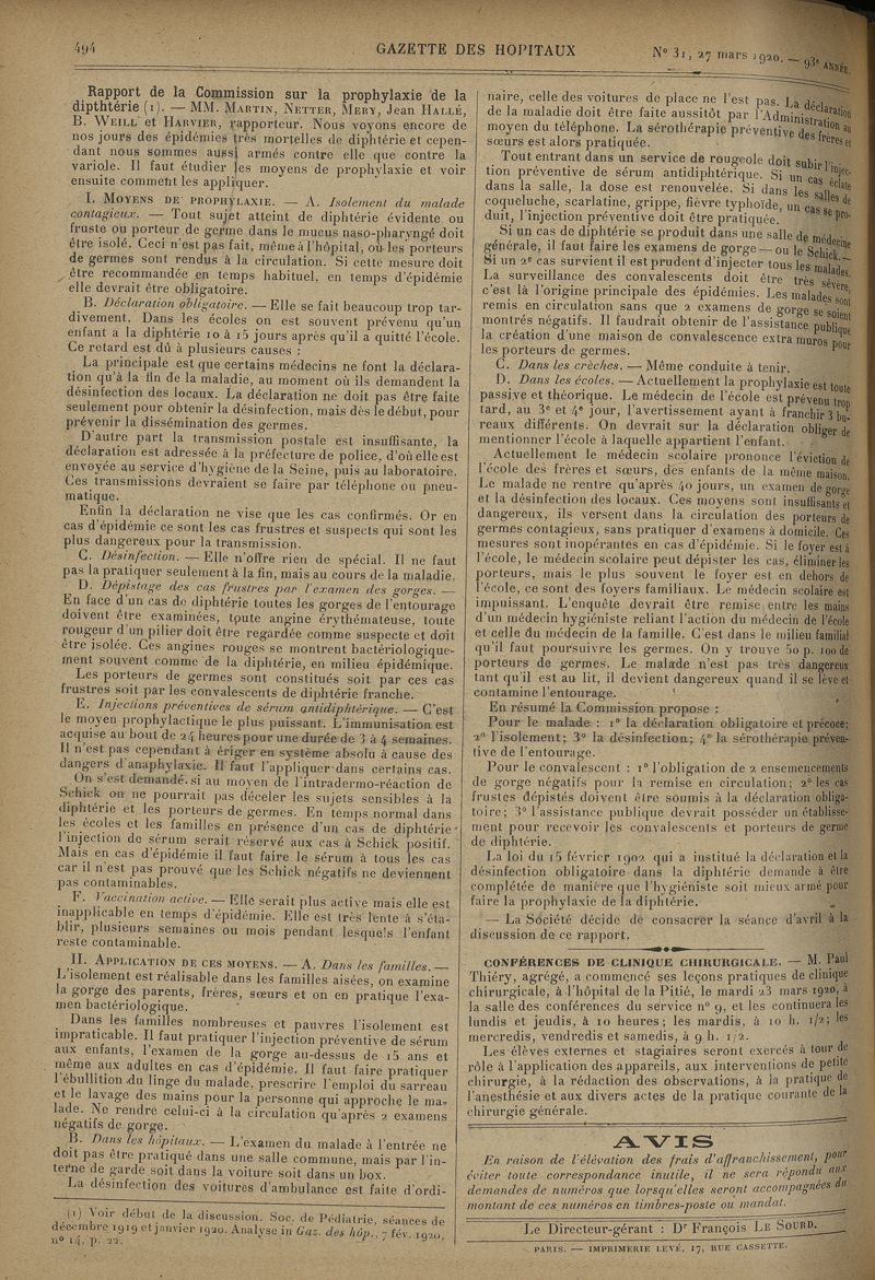 1920, tome 93e année. -