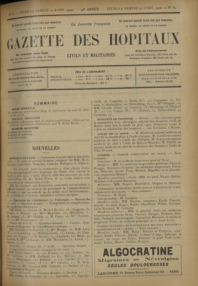 1920, tome 93e année. -
