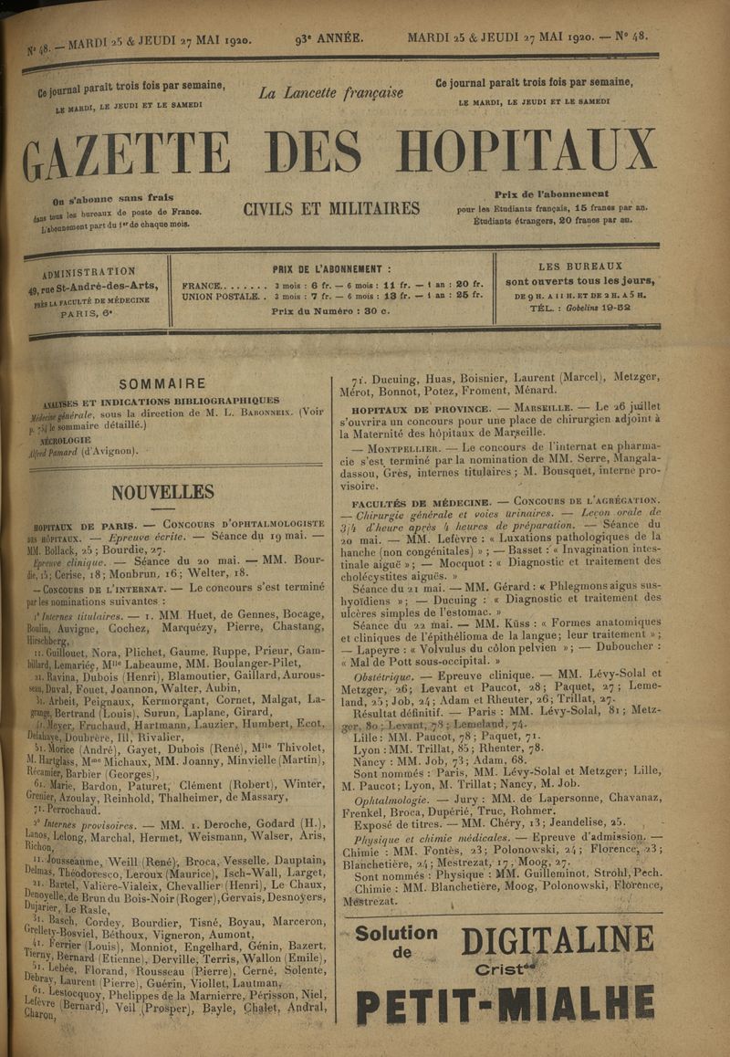 1920, tome 93e année. -