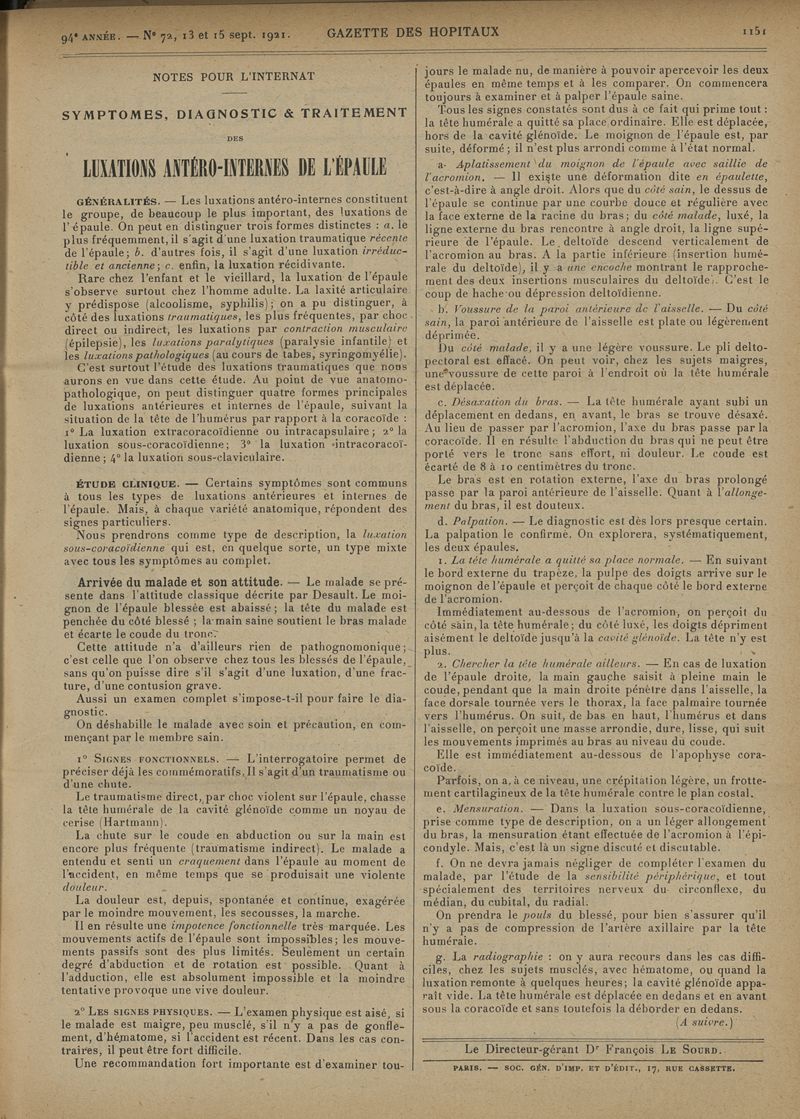 1921, tome 94e année. -